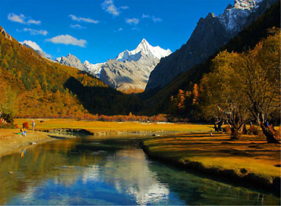稻城亚丁秋天的景色很厚重,深绿、金黄、火红相间的森林,演绎着不同的美感。雪山、冰川、峡谷、草甸、湖泊……每一处的风景都纯粹而惊艳,给你眼睛到心灵的按摩。除了三大神山,还有冲古寺、牛奶海、五色海、洛绒牛场、珍珠海、杜鹃坪等风景区游览,稻城周边的傍河、桑堆与红海滩也是值得前往、驻足的地方。