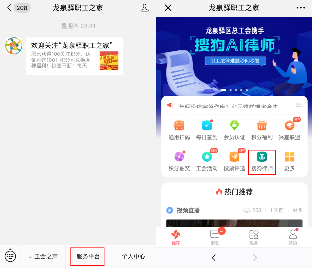 (图:搜狗律师“AI法律咨询”落地『龙泉驿职工之家』服务平台)