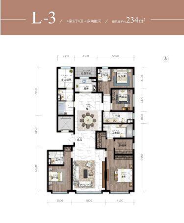 与此同时,234平米户型的功能分区更多元,在针对“二孩”家庭配置男孩房、女孩房的基础上,明窗的衣帽间更加宽敞通透,户主还可以根据自己的需求和喜好,将多个功能间任意打造成书房、茶室、保姆房等独立空间。