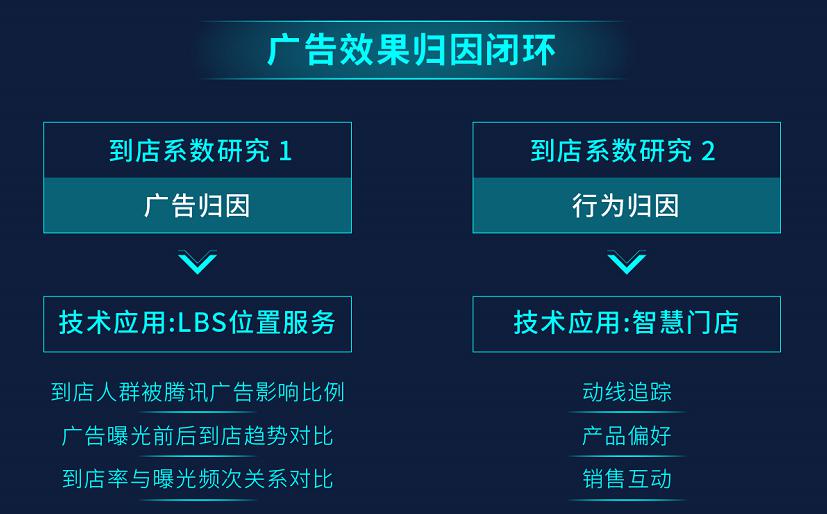 效果归因优化复投——以数据为基础构建的广告效果归因模型则通过基于LBS位置服务,分析广告投放与到店行为,研究到店系数。同时利用智慧门店技术的应用,对产品偏好、销售互动等行为进行解析,不断优化数据,回传复投,提供指导。
