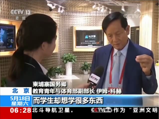 语音识别技术不仅能够帮助说方言的孩子练习说普通话,也能让全世界人们学习中文,这些让柬埔寨教育青年和体育部国务秘书尹科赫大开眼界,拿着手机全程记录。他表示“柬埔寨师资短缺,但学生们想学很多东西,比如英语、中文,但是我们缺少达标的老师。只有发音不标准的老师,导致他们学中文后,讲的中文没人能听得懂,人工智能能提供发音标准” 。