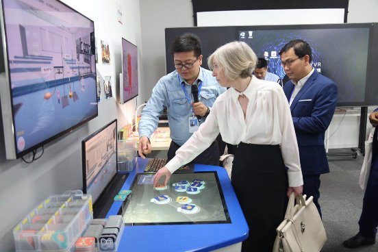 5月17日,在人工智能与教育大会期间,出席大会的联合国教科文组织教育助理总干事斯蒂芬妮亚·贾尼尼(Stefania Giannini)、联合国教科文组织教育信息化部门负责人苗逢春、中国联合国教科文组织全国委员会副秘书长周家贵、南苏丹教育和教学部部长邓·邓·霍克·亚伊(Deng DengHoc Yai)、柬埔寨教育青年和体育部国务秘书尹科赫(Im Koch)、日本文部科学省网络安全部长助理菱山豊、新加坡教育部处长Aaron Loh等一行莅临科大讯飞北京分公司。科大讯飞教育事业群副总裁杨军、科大讯飞教育事业群副总裁任萍萍、讯飞幻境CEO 闫宏伟全程陪同参观。