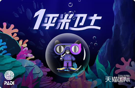 PADI和天猫国际为此这次活动,首次推出了限量联名潜水卡,主要作用是鼓励更多的潜水员加入我们保护海洋保护珊瑚的行动中。