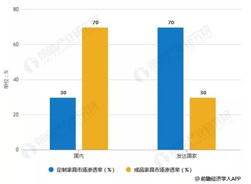 据前瞻产业研究院发布的《中国家具行业市场需求预测与投资战略规划分析报告》统计数据显示,2017年国内约2027亿定制家具市场规模以及家居制造业9056亿营业收入,按照这样的数据来测算,国内定制整体渗透率仍不到25%,远低于发达国家60%-70%的渗透率。增长空间巨大。