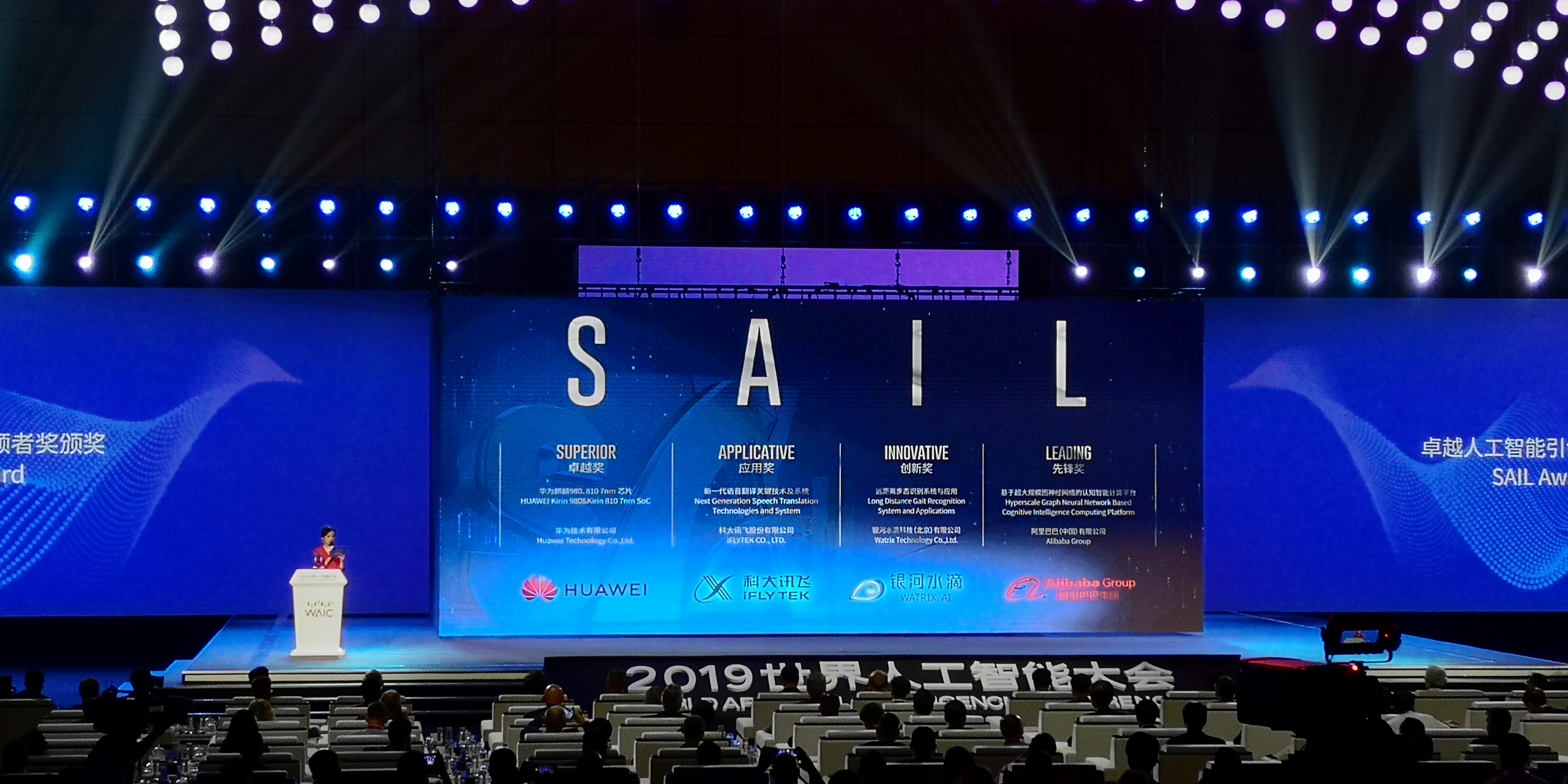 8月29日,2019世界人工智能大会(WAIC)上隆重揭晓了SAIL奖(Super AI Leader,即“卓越人工智能引领者奖”),华为、科大讯飞、银河水滴科技、阿里巴巴经过层层角逐脱颖而出,分别获得卓越奖(Superior)、应用奖(Applicative)、创新奖(Innovative)和先锋奖(Leading)4大奖项,共同代表了当前人工智能领域的顶峰智慧。