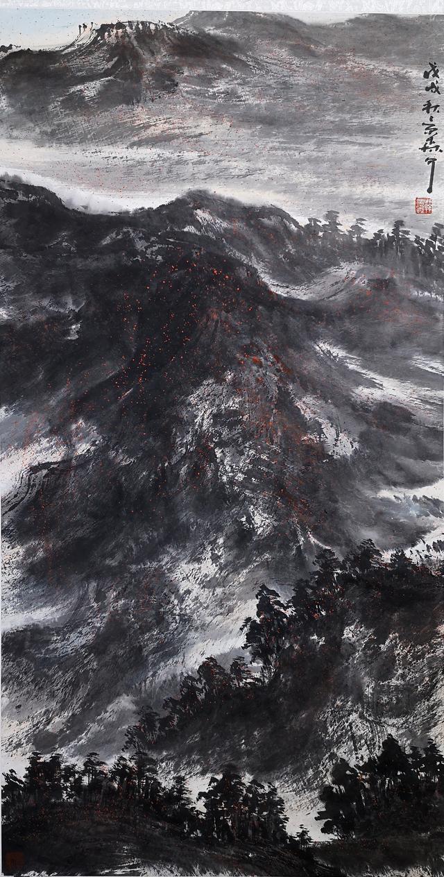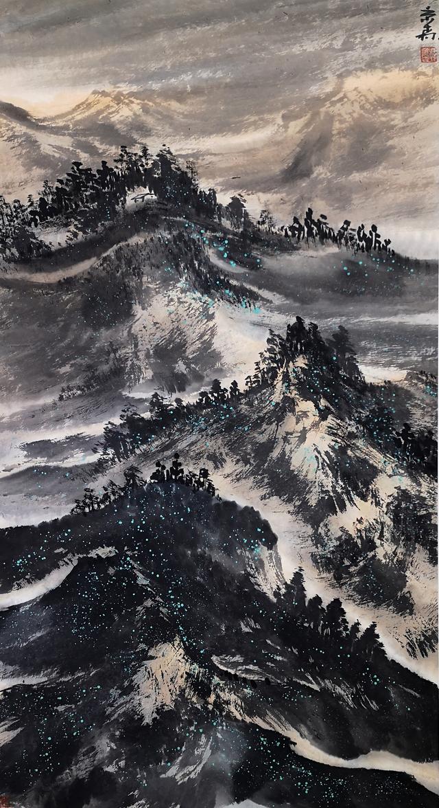 中国山水画历史悠久,是一种传承从未间断过的画种。几千年来创造了无数辉煌,也造就了许多闪耀的艺术大师,当代画坛更是人才济济、名家辈出。韩景森是一位坚守传统而又勇于创新的艺术家,多年来,他在山水画的创作道路上一往直前、义无反顾。他的山水作品既有严密雄浑之格局,又有着清逸古雅、松秀韶俊的诗情画意,形成了独具特色的艺术风格。其画面构图雄浑深沉,奇峰峻岭间喷薄着淋漓恣肆、磊落旷达的磅礴气象,每一幅作品都凝聚着其坚定不移的艺术探索精神。韩景森继承了中国山水画的传统,对宋、元、明、清诸大家均有较深的研究和借鉴,特别在笔墨语言上千锤百炼,掌握了扎实的专业基本功。在此基础上,他逐渐形成了自己浑厚凝重、格调高古的艺术风格。他的《海涧天高人间境》画面严谨、浓郁而华滋,体现出其深厚的文化学养和渐入化境的山水境界。画面中群山错落、幽林密布,却无一处废笔、赘笔、糙笔。整个画面纯正典雅、自然深厚,将中国画传统和现代人的审美意识、时代精神融合在一起,创造出一种与传统既有承续又有开拓关系的绘画样式。