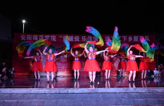 来自天津体育学院运动与文化艺术学院的马林婷带来胶州秧歌《映山红》、西安音乐学院的刘泽堃带来了流行歌曲《天后》演唱、周口师范学院音乐学院的杨草琳独唱美声歌曲《长江之歌》、获嘉县职业中等专业学校晁盼带来蒙族舞蹈《寂静的草原》、获嘉一中高三毕业生江欣瑜献唱民族歌曲《芦花》,一个个精彩的歌舞表演获得场下观众阵阵掌声和喝彩声。当天,同学们的精彩演出展现了大学生的良好风貌,令在场的乡亲们看得目不暇接,收获了现场村民的一致好评。