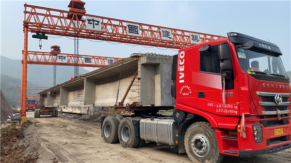 此次架设的T梁为阳泉绕城改线工程南坪2号桥左1-5T梁,梁长28.918米、重83吨。由于二标段4座桥梁过于分散,且与东西线左右交叉,车流量较大,途运输及架设施工难度较大,为保证首片T梁顺利架设,项目部召开专项讨论会议,根据现场施工情况,对安全措施、应急预案和技术方案进行了进一步的优化和完善,最终采用吊车进行桥梁架设,不仅缓解东西线交通压力,加快施工进度。架梁前夕,项目部多次进行查缺补漏,排查安全隐患,对T梁施工工序进行详细交底,加强现场施工的过程控制,同时与当地政府、交管部门积极协调,为梁板运输开辟“绿色通道”。