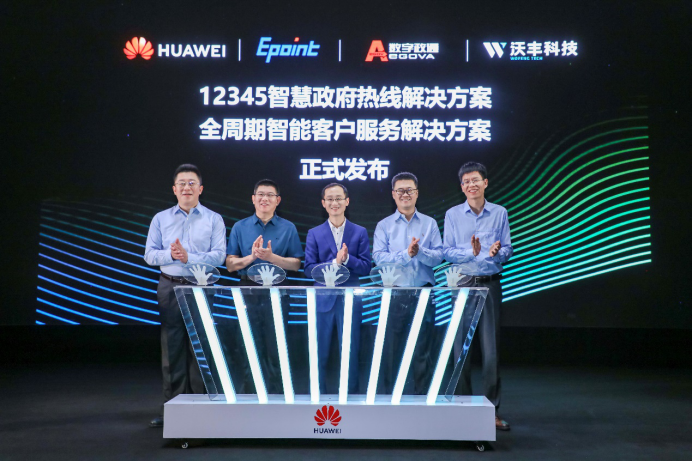 “12345智慧政府热线解决方案”包含两个部分,其中“12345热线业务平台”由华为云联合国泰新点打造,“智慧政务热线感知平台”由华为云联合数字政通打造。