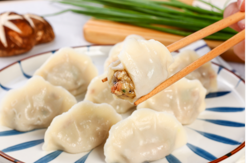 以水饺为例,与市面上传统水饺相比,植爱植物肉水饺肉质饱满,汁水丰富,口感不油腻,热量更低。
