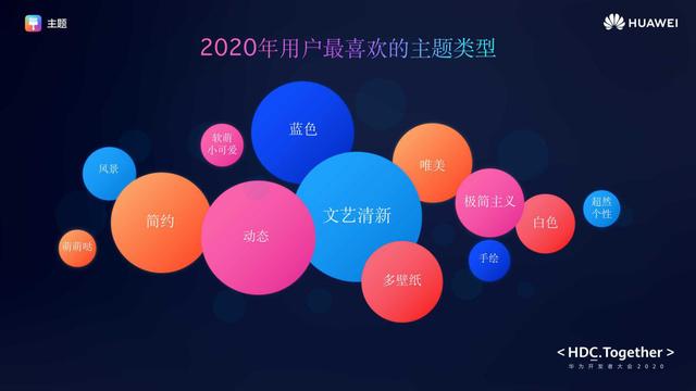 9月11日,华为开发者大会2020在东莞市松山湖举行。在以"艺术·突破想象"为主题的华为主题分论坛上,《华为主题2020用户大数据》重磅发布,华为消费者云服务音乐与图片业务部部长魏武分享了华为主题业务发展概况与生态愿景,向全球亿万华为终端用户交上一份令人瞩目的成绩单。