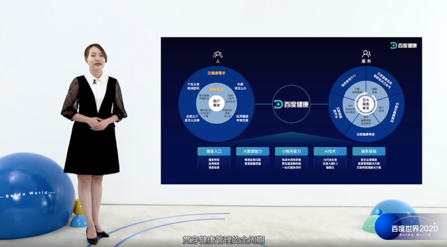 这是在9月15日“万物智能——百度世界2020”大会上,百度健康总经理、百度健康医典总经理杨明璐展示的百度健康一站式服务体验短片。会上,百度健康重磅发布了针对用户的一站式就医服务解决方案,计划引入更多公立医院,提供从健康科普到就诊的一站式服务。
