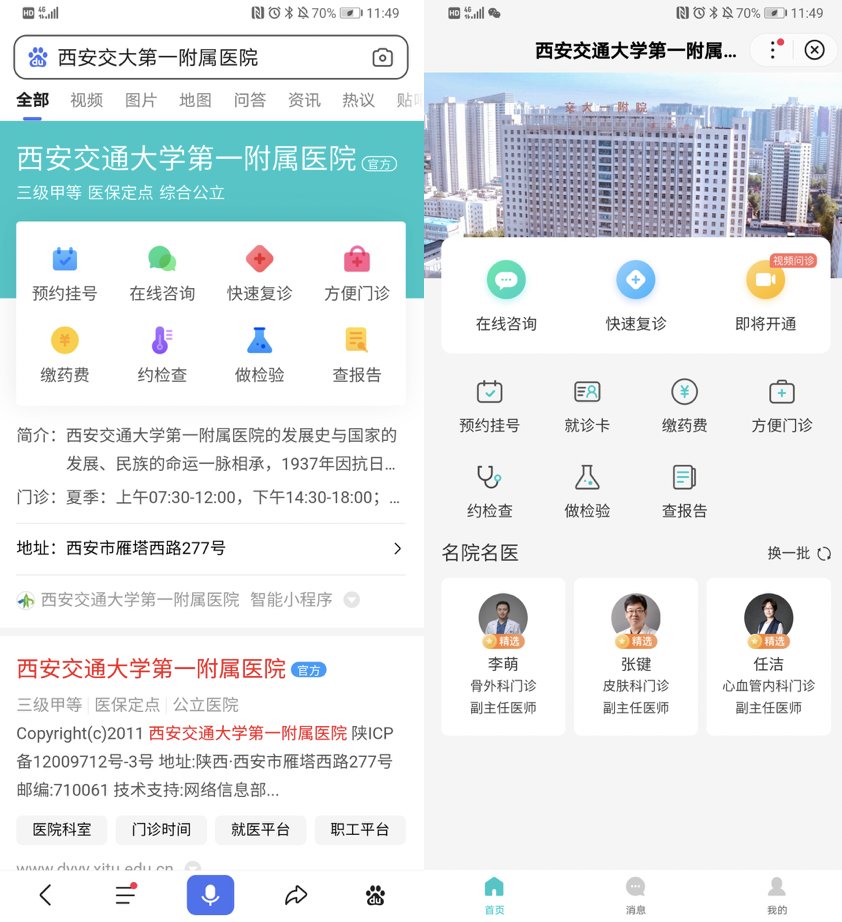 西安交通大学第一附属医院院长施秉银表示,互联网医院打破了时间和空间的限制,对于患者而言,可以直接在百度健康获取全流程的健康服务,并通过小程序挂号就医,让看病变得更快捷便利;对于医院来说,可以发挥百度健康的技术和搜索入口优势,搭建线上平台,快速提高诊治效率。