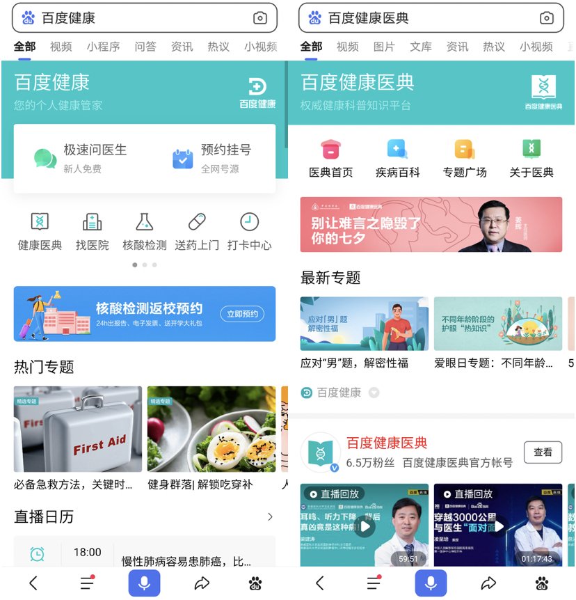 百度每天服务的健康类搜索用户超过1亿,用户的需求从养生保健、疾病知识到就医信息、康复治疗,贯穿健康管理的全周期。为持续提升健康服务能力,百度健康深耕医疗健康产业,挖掘健康服务创新模式,今年7月,百度健康上线了视频咨询和电话咨询产品,用户可以直接与医生“面对面”沟通治疗,提供更及时、更高效的个性化咨询服务,大幅提升问诊效率。