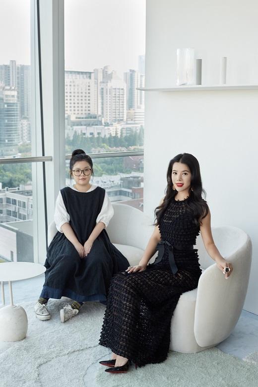 余晚晚Wendy Yu与FARFETCH大中华区董事总经理Judy Liu,及中国四位独立设计师(Huishan Zhang张卉山、Caroline Hu胡颖琪、by FANG杨芳、Feng Chen Wang王逢陈)现身风格型廊快闪展览现场开幕酒会