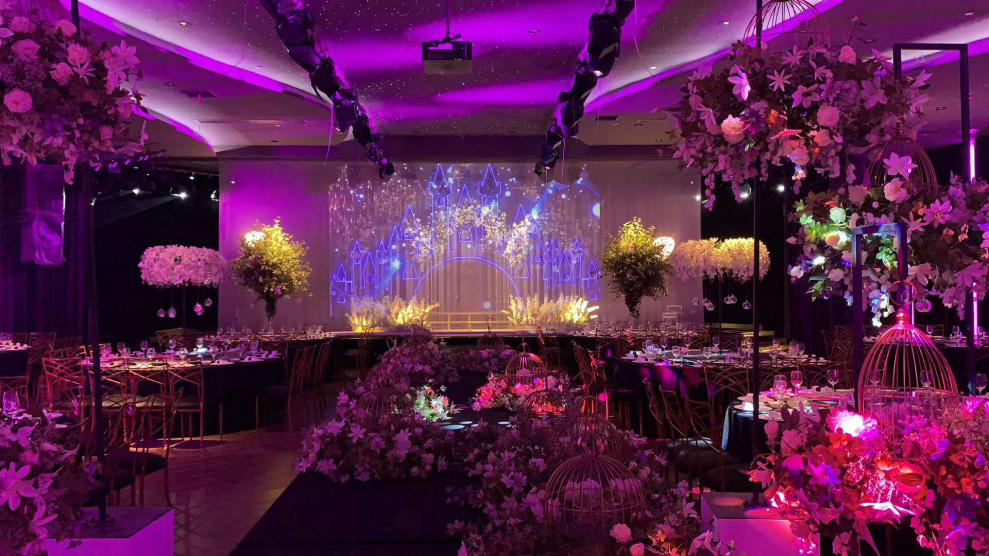 婚礼宴会厅规模各异,风格也不尽相同,于是投影机的摆放位置、距离荧幕距离便成了需要考虑的问题,但理光投影机用“实力”说话,生产多种产品轻松应对各种难题。