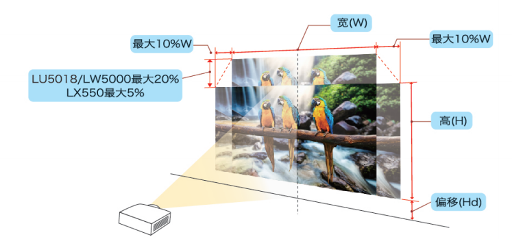 四款投影机均具有水平、垂直梯形校正/四角校正的功能,轻松使投射画面成为矩形,不惧任何场地、角度投射放置难题。