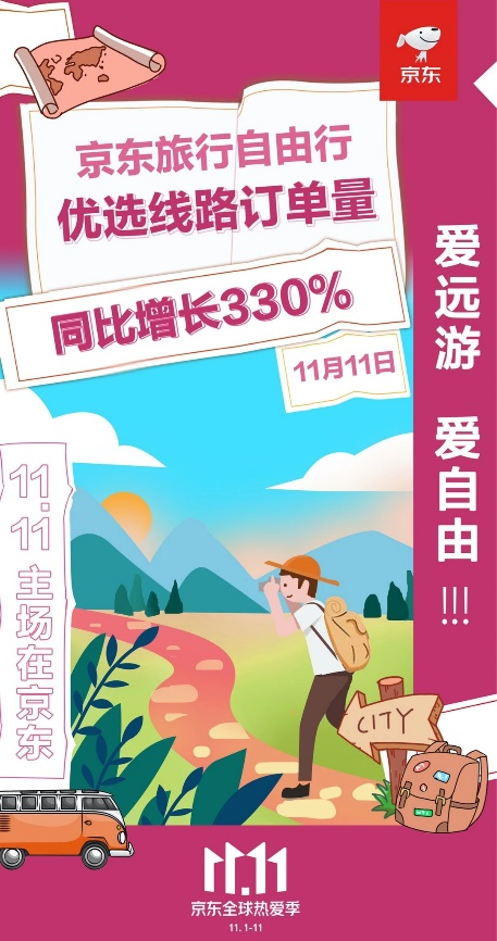 但有过来人说,表白可不是脱单的最终目的,什么“表白不是进攻的冲锋号,而是胜利的号角”,其实说得不严密,事实上,表白成功其实是下一阶段的开始:追到手不是结束,总得让另一半时时刻刻都有惊喜,才能保持热恋不褪色。到了这个阶段,送花送礼已经是日常操作,一起旅游才最能让感情升温。这时候,京东零售集团CEO徐雷和携程集团联合创始人、董事局主席梁建章两尊大神相约直播间向你招手。11.11 期间,京东平台酒店订单同比增长了7.2倍,不用多说,不少都是幸福的新情侣。在已经售出的能绕地球800圈的飞机里程中,走遍了四川、江浙等地的各大景点也让感情快速升温。