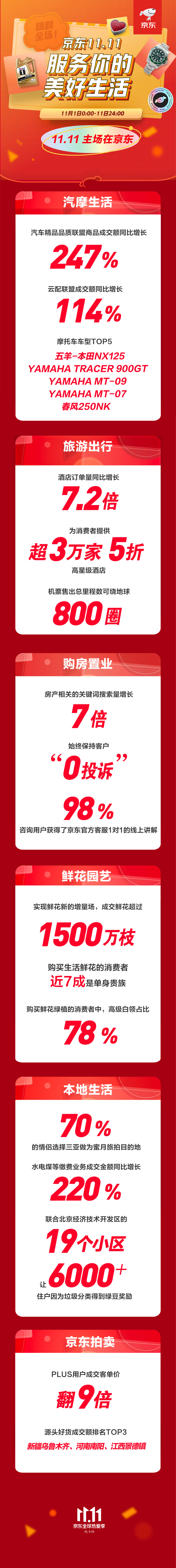 另外,要是眼光再放远一点,到了买房买车谈婚论嫁的时候, 11.11 期间,有人还在顶着寒风苦兮兮地跑中介看楼盘,也有人就能抓住京东11.11活动的各种优惠,在京东房产线上VR看房,让客服1对1讲解,直接把房产相关的关键词搜索量增长了7倍,让成交率达到了20%。方便出行的爱车也可以在全国29个省份,超过1000家京东京车会门店里随便挑一家做保养。有京东11.11的优惠,不用白不用。同比增长220倍的京车会保养套餐订单量,证明哪都不缺聪明人。还是那句话,善于经营爱情的人,总能找到合适的方法给生活添彩,所以人家才能脱单,庆祝11.11优惠大促。