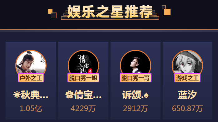 游戏和户外两个赛道靠后。直到晚上小鱼儿率先爆发,很快荣誉值破5000万,领先排行榜,似乎是对冠军志在必得。