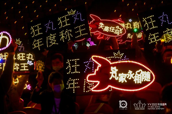 YY年度盛典是主播和粉丝一年一度的大联欢。今年YY年度盛典进一步强化线上线下联动狂欢的玩法,让粉丝跨越空间局限,感受更多现场体验。除了现场的主播明星粉丝激情互动外,线上粉丝也借助年度灯牌、霸屏动画、弹幕等新互动形式与主播明星进行互动,直播间藏有海量礼物的荣耀宝箱也备受欢迎,整场盛典直播间弹幕不断。在晚会的最后,粉丝们在直播间整齐划一刷出了“在一起,更给力”的弹幕,为YY2020年度盛典画上了完美的句号。