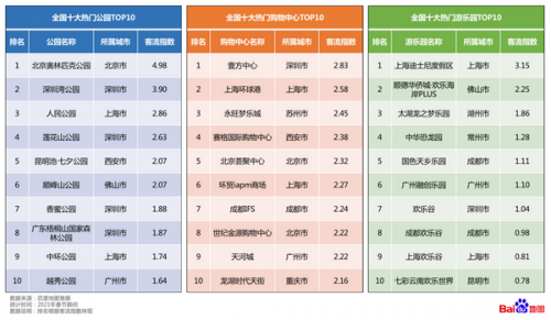就地过年,年味不减。“原年人”们不断解锁过年新方式,为各地市场带来了新的变化与活力,近郊游玩、市内购物的消费需求得到了集中释放。百度地图慧眼基于各地客流指数,公布2021年春节期间全国十大热门公园、购物中心和游乐园,位于榜首的分别是北京奥林匹克公园、深圳壹方中心和上海迪士尼度假区。