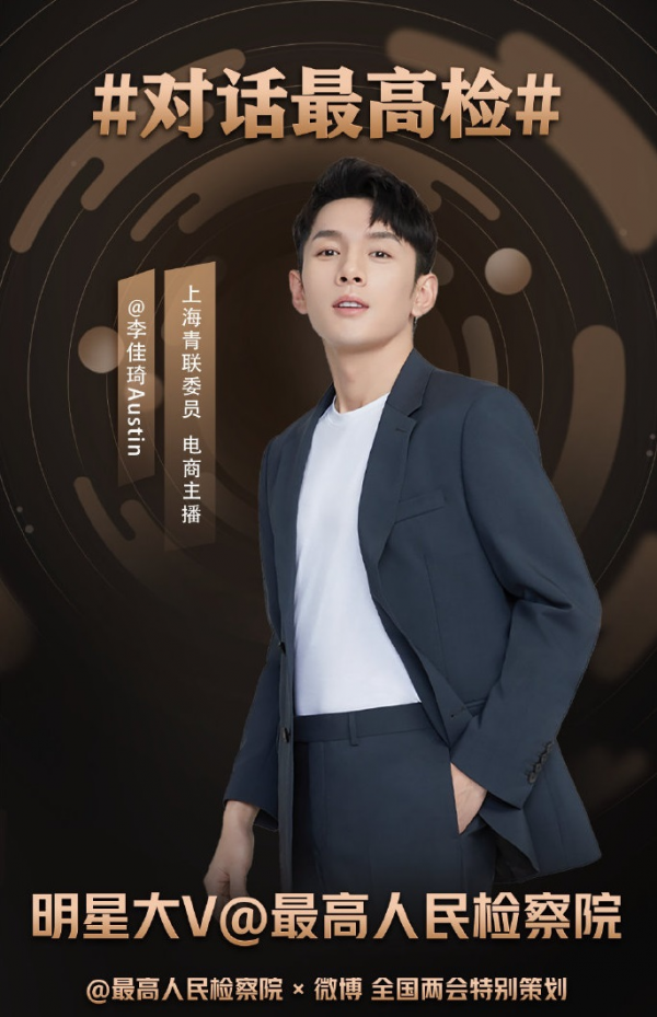近日,上海青联委员、电商知名主播李佳琦联合众明星助力最高人民检察院在微博开展2021全国两会特别策划#对话最高检#。就电信网络诈骗、检察“战役”、未成年人保护、社会治理等话题发起互动问答,普及法律常识,带领广大网友一起学习法律新知识。
