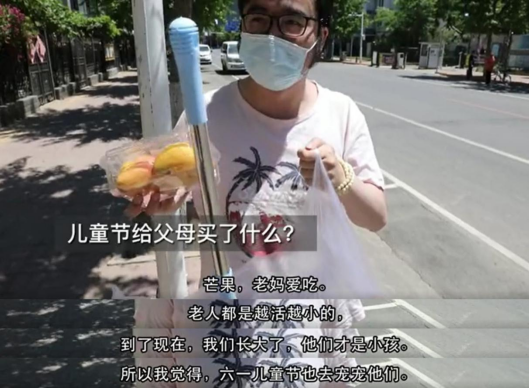 (一位消费者给父母买了芒果作为儿童节礼物)