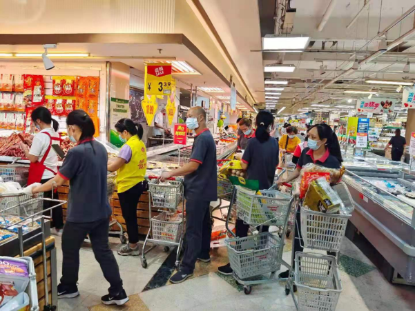 “这几天线上订单很多,我们超市动员了全体员工一起捡货,油、米、面、肉菜、蛋奶之类的‘囤’货居多,都是大件儿,捡好货就交给美团骑手送出去,大家一起加油。”日前,广州市华润万家正在忙碌的一位工作人员表示,作为给荔湾区的部分封闭小区供货的超市之一,店内最近几天订单量激增,已经发动全部人力集中供货,确保生活必需品的民生供应。