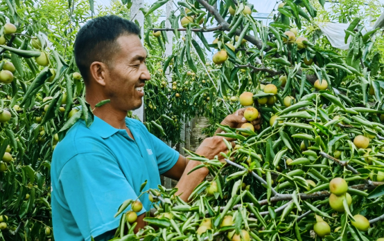 户东海今年51岁,种了12年冬枣。十几年前,他和村民也曾种过苹果、梨,但赚不到钱。自从改种冬枣,日子富裕起来。现在,户东海经营着10亩枣园,年收入30万元。靠种冬枣的钱供儿子念了大学。