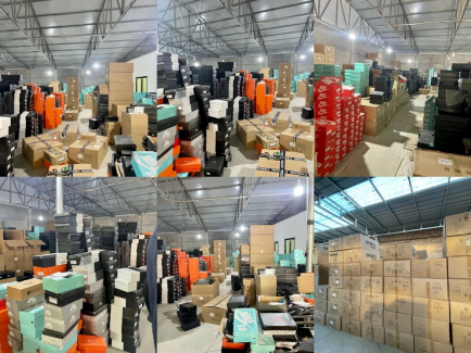 被查封的仓库中堆满带仿冒“得物包装”套件假鞋