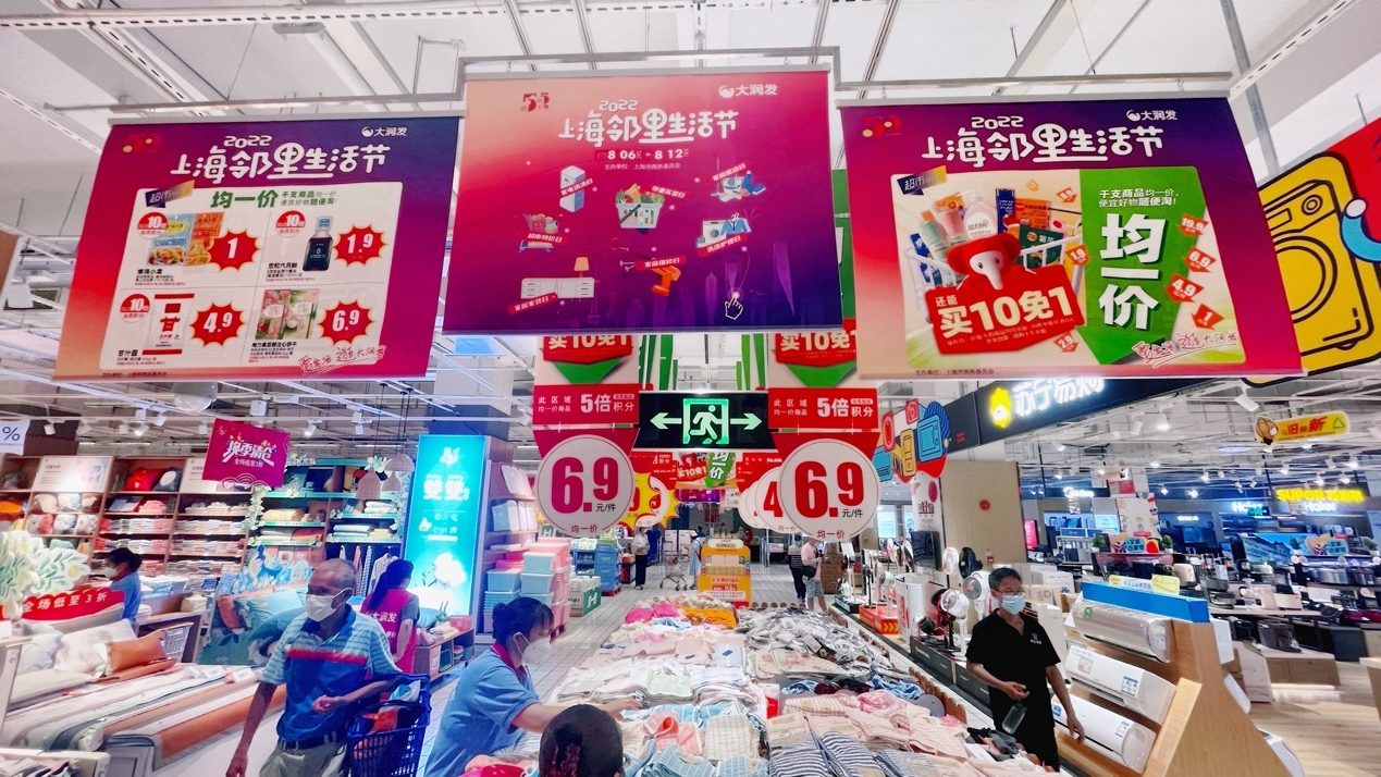 (大润发上海门店内“上海邻里生活节”主题氛围浓厚)