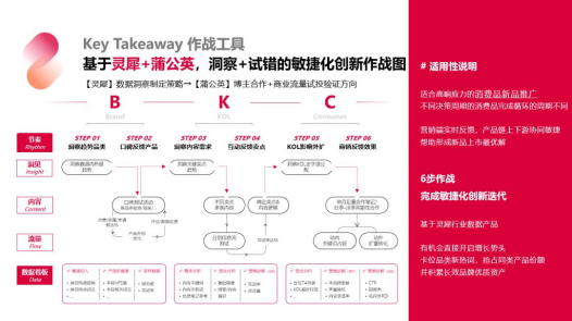 同样,在Define定义产品策略、Expand击穿品类赛道、Advocate沉淀品牌资产所对应的营销阶段,报告也提出了品牌、达人与用户共创的敏捷型创新方法论。