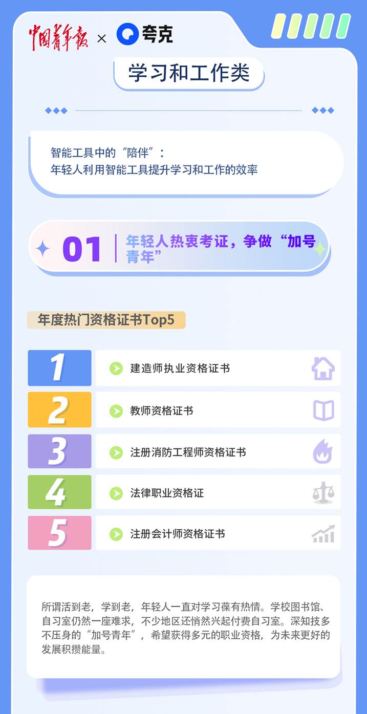 白皮书数据显示,热衷于考证是这届“备考青年”获得安全感的新方式。数据显示,建造师执业资格证书、教师资格证书、注册消防工程师资格证书的搜索量最大。“备考青年”不是在考试就是在考试的路上。