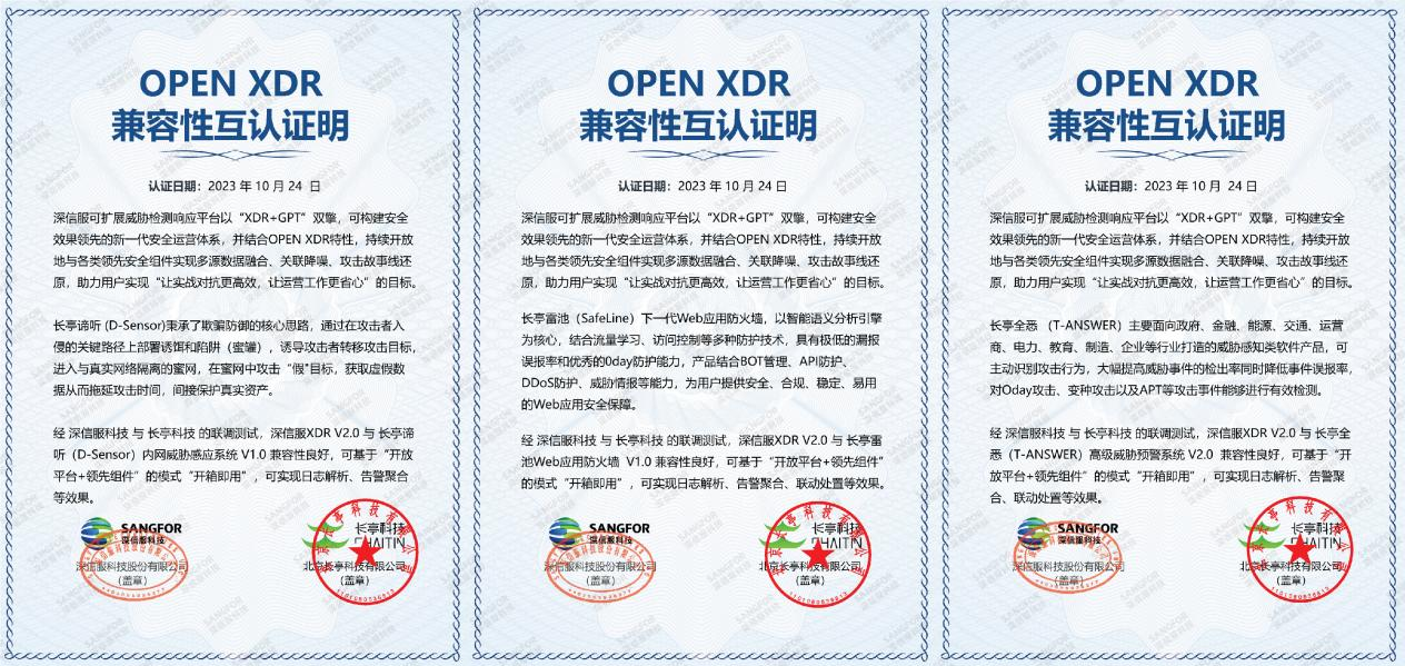 当前,深信服 XDR 平台已支持与100+第三方安全设备的开放对接,并在实战攻防演练中成功验证。