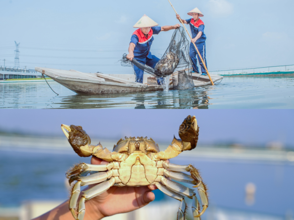 图注:蟹农展示刚刚捕捞的优质大闸蟹