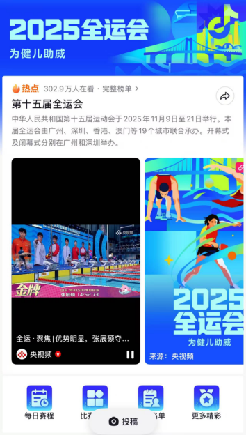 全运会让广深成为全国关注焦点,线上平台成为热度发酵核心阵地。抖音生活服务数据显示,开赛以来#2025全运会 相关视频播放量超19.1亿次,“全运会”“观赛”“全运套餐”等关键词搜索量环比增长289%。从赛事瞬间到粤式早茶,再到城市地标,丰富的线上内容全方位展现湾区魅力,有效撬动跨城消费需求。