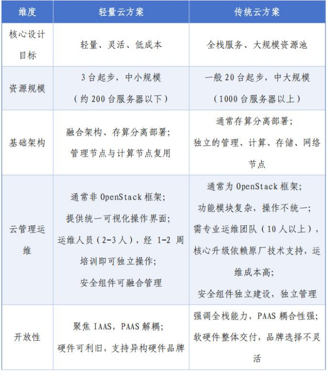 《报告》指出,轻量云作为私有云的一种部署形态,通过将计算、存储、网络等各类基础云服务能力高度封装集成,对平台架构、功能模块和管理运维流程进行优化,实现了“架构轻量化、管理轻量化、平台开放解耦”。