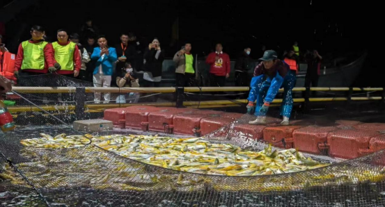在中国,每10条大黄鱼就有8条来自宁德——宁德位于闽东沿海,拥有众多天然港湾,咸淡水交汇带来丰富饵料,再加上适宜的水温、盐度等自然条件,为大黄鱼的生长提供了得天独厚的环境。2024年,宁德大黄鱼产量达21.49万吨,占全国总产量约80%,全产业链价值突破200亿元。