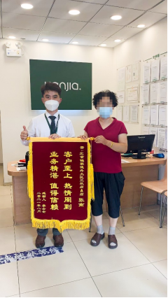 (图注:客户李女士因为张南热情周到的服务送来锦旗)