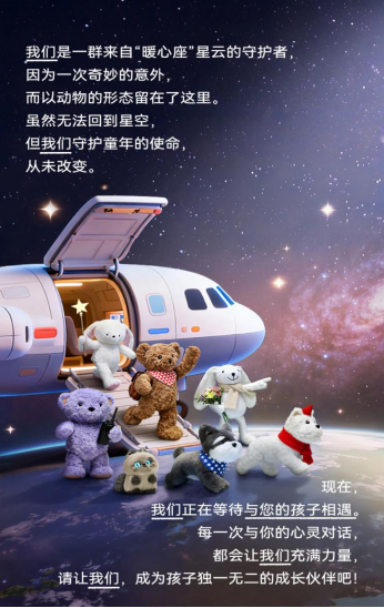 该系列涵盖包括AI毛绒玩具、AI闹钟、AI台灯等在内的13款产品。其中,AI毛绒玩具系列产品各具特色人格,如稳重可靠的圆月熊“暖暖”、柔软贴心的云朵兔“茸茸”、善于思考的智星狗“嘟嘟”等,借由差异化的“人设”与交互风格,全方位覆盖孩子需求。