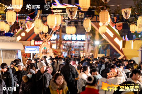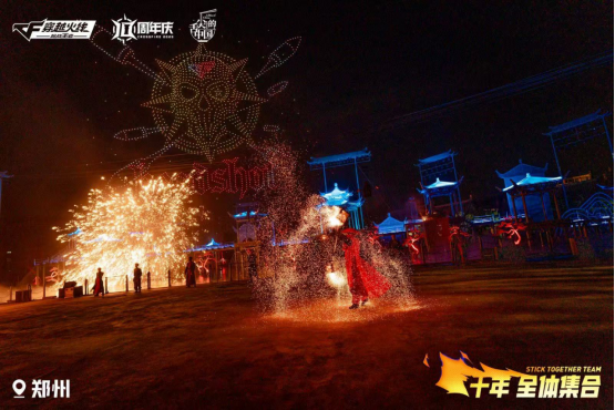 非遗糖画传承人手腕轻转,缕缕糖丝飘落,迅速凝结成《穿越火线:枪战王者》(以下简称“CF手游”)中玩家熟悉的角色轮廓;竞技舞台上,河南本地大厨与CF手游策划、主播接龙PK,共同打造十周年晚宴;千架飞行器以精准编程回应千年技艺“打铁花”,科技与匠心在绚丽灯光下交相辉映……如此烟火气的一幕,正是12月CF手游十周年盛典系列活动期间,落地河南郑州的“非遗美食节”现场画面。