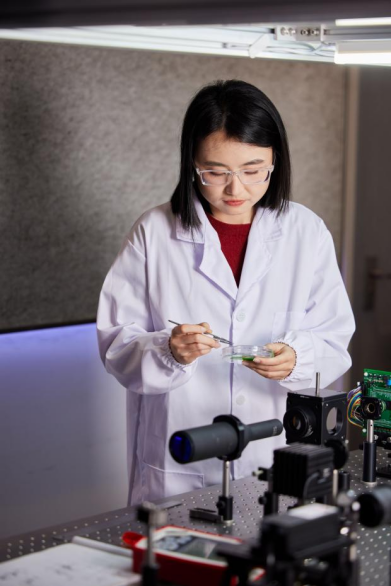 陈一彤在进行超低功耗AI光芯片测试 摄影:石磊