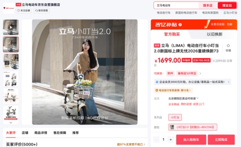 活动现场,京东汽车将为济南消费者带来多款又好又便宜的电动自行车。其中,“立马小叮当”新国标电动自行车具备安全可靠、设计时尚、骑行舒适等特点,广受市场青睐。该车日常价为2399元,此次享受京东百亿补贴直降700元,1699元即可到手。