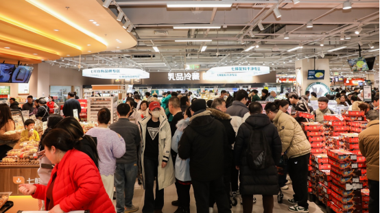 1月30日开业以来,据悉七鲜超市北京荟聚店三日累计吸引客流近15万人次,成为春节前京城线下消费的“流量引擎”。