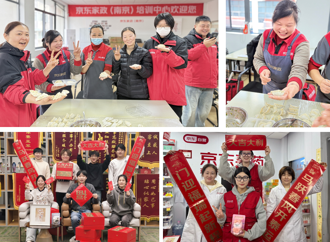 过去一年间,越来越多的兄弟姐妹加入京东一线员工大家庭。为了让大家异地过年也能感受到家的温度,除了快递站点、物流仓库,在全国各地的京东家政培训中心、京东养车、五星电器、七鲜小厨/咖啡、京东大药房门店以及七鲜、华冠、佳宝超市,京东都陆续落地一系列新春文化关怀举措,精心布置春节氛围,举办送福字、包饺子、发放暖冬礼包等活动。其中,京东位于北京、武汉等多地的“小哥之家”,也将迎来全职骑手、快递小哥的家人们到他们工作所在的城市团聚。