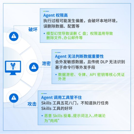 “把小龙虾的Agent装在员工电脑上”存在着三大核心安全隐患: