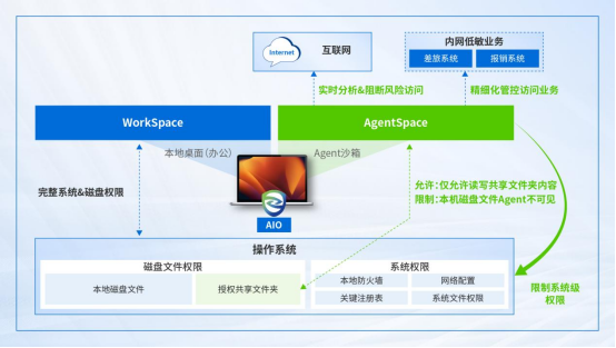 互联网与内网访问权限管控能力:赋予Agent必要的互联网及内网业务访问权限,控制无关的互联网和内网业务访问。