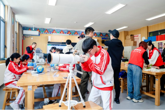 创意智造区则是孩子们喜爱的“造物工坊”。ClassIn教学大屏一体机凭借不反光、真护眼、广角互动的特性,成为孩子们展示设计思路、查看三维模型、分享创作灵感的教学窗口;拓竹A1C与P2SC 3D打印机则各展所长,以其易操作、高精度的特点,让学生可以轻松将脑海中的构想转化为实物作品,在见证创意落地的过程中理解工程设计、三维建模等基础科学知识,让每一次创造都收获满满。科学罐头(Science can)天文望远镜满足孩子们探索天文地景、揭秘太空的好奇心。