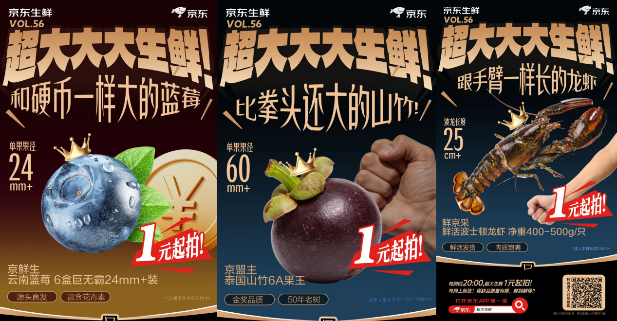 洞察到这一消费趋势,京东生鲜持续推出的“超大生鲜”拍卖活动迎来重磅升级,从原本的每周一场变为每晚八点开拍,每天精选3-5款“新奇特”生鲜好物,以1元起拍的趣味方式,让消费者想拍就拍。即日起,打开京东APP搜索“超大生鲜”,就能进入会场“捡漏”全球生鲜尖货。